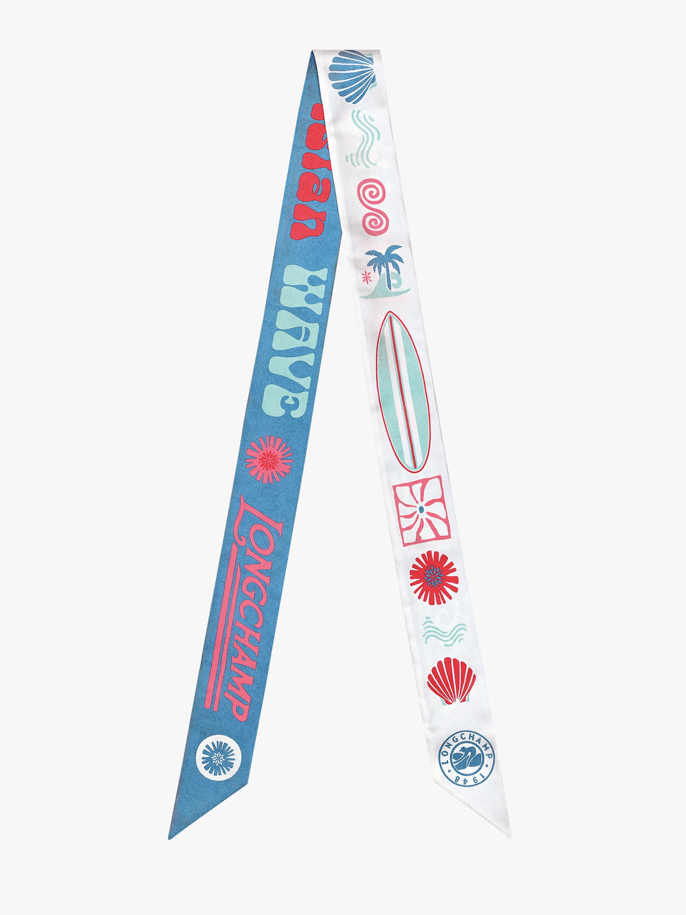 Le bandeau Catch The Parisian Wave LONGCHAMP, en soie délicate, incarne parfaitement l’esprit surfeur de la marque, illustré par le slogan rétro « Catch the Parisian Waves ». Son imprimé organique mêle nageoires, coquillages, coraux, ondulations de vagues et détails solaires, créant un univers océanique vibrant et vivant. Les tons doux, presque délavés par le soleil, rappellent les longues journées d’été passées entre mer, ciel et liberté, insufflant une sensation de fraîcheur et de liberté. Ce bandeau est un accessoire à la fois élégant et estival, idéal pour apporter une touche de nature et de légèreté à vos tenues.