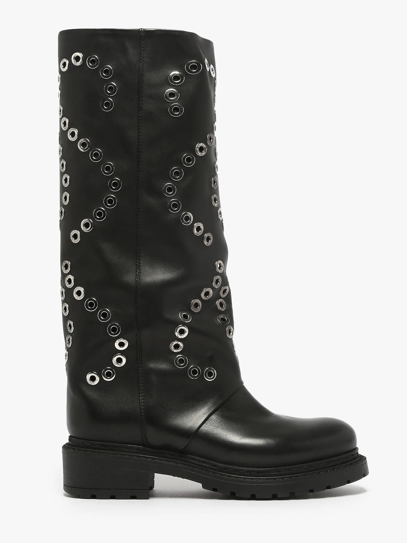 Découvrez les bottes motardes Metisse, un modèle noir ultra tendance rehaussé d’œillets argentés qui apportent une touche rock et moderne. Conçues entièrement en cuir de haute qualité, elles offrent un confort optimal grâce à leur doublure et semelle intérieure en cuir. La tige large assure un maintien parfait tout en facilitant l’enfilage, et chaque détail reflète un savoir-faire italien irréprochable. Les finitions soignées soulignent l’élégance et la durabilité de ces bottes, idéales pour compléter un look audacieux et raffiné. Made in Italy, elles incarnent l’alliance parfaite entre style, confort et qualité. Un incontournable pour celles qui recherchent des bottes robustes et élégantes au quotidien.