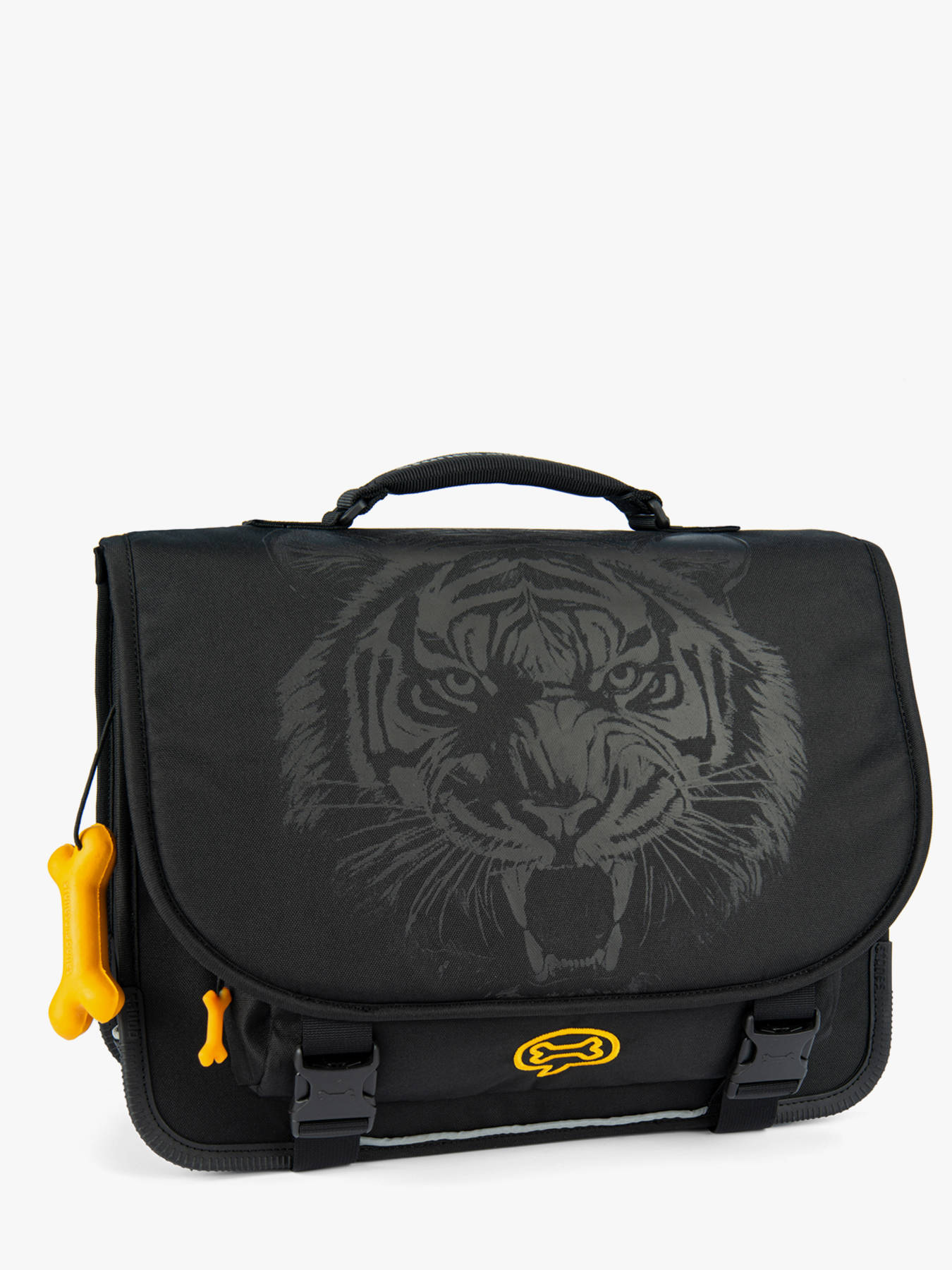 38 cm - 15 litres - 0.88 kg ~ Cartable garçon 38 cm de la marque Stones and Bones. Ce cartable enfant est idéal pour le CP, CE1 et CE2. Il se divise en deux compartiments et peut contenir les formats cahiers A4 et 24x32cm. On retrouve à l'intérieur une petite poche à fermeture zippée. Pratique, il dispose de deux poches à fermeture éclair sur le devant (sous et sur le rabat), idéales pour un petit goûter ou l'agenda. Petit plus, ce cartable dispose d'une étiquette nom. Le fond et les angles du cartable sont renforcés pour plus de solidité et des bandes réfléchissantes sont disposées autour du sac et sur les bretelles. Conçu pour le confort des enfants, le dos et les bretelles sont rembourrés.