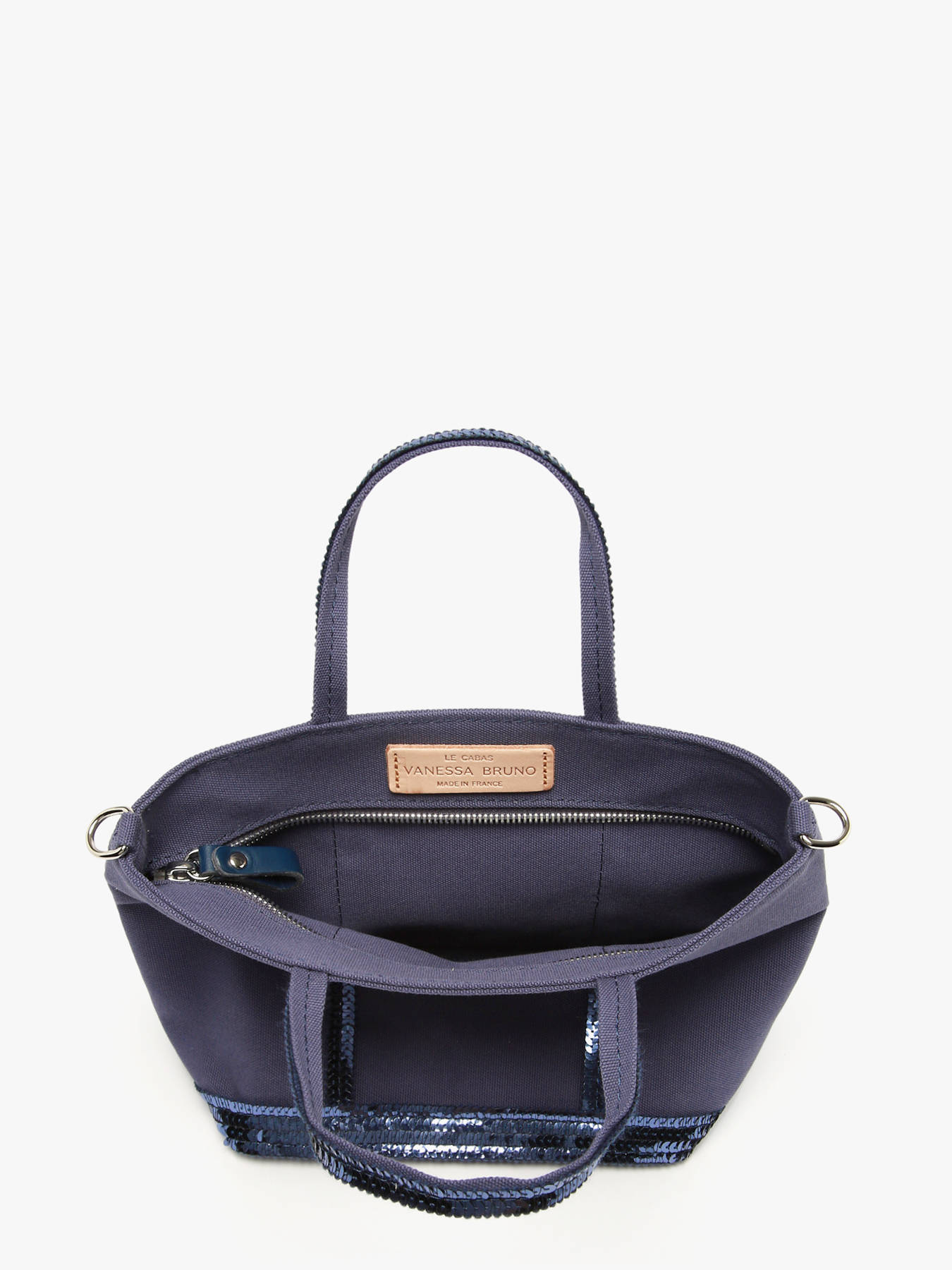Ce sac Vanessa Bruno reprend le modèle signature de la marque française. Il est présentée ici dans une version mini. Il est réalisé dans une belle toile légère rehaussée de sequins ton sur ton. Entièrement zippé, il permet d' y glisser votre porte monnaie, téléphone et clés. Portez le en travers du corps par sa fine bandoulière amovible.