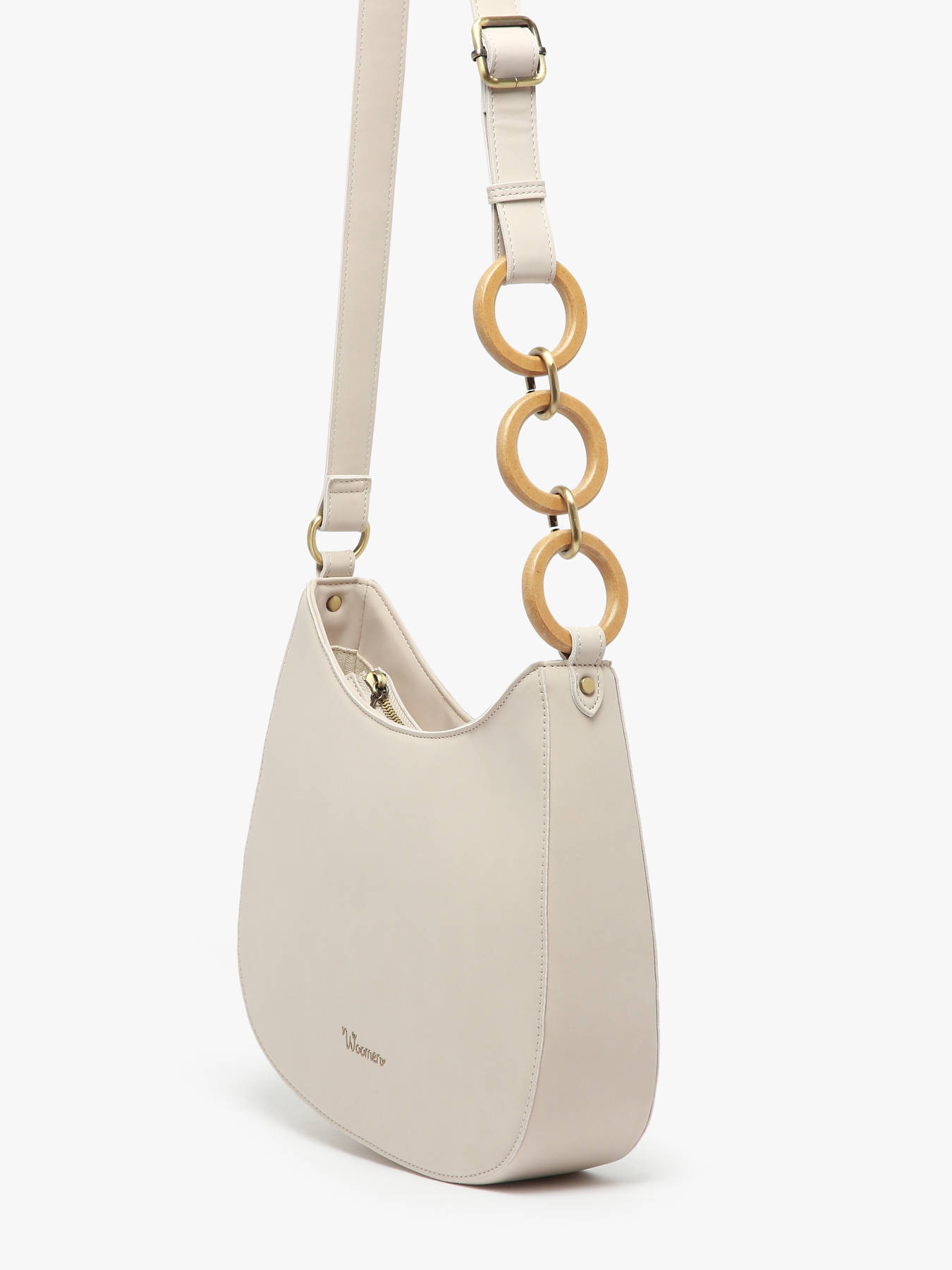 Le sac bandoulière WOOMEN de la ligne HELICONIA est conçu en polyuréthane composé à 58% de matières recyclées, avec une doublure en coton et lin pour plus de confort. Il se ferme à l'aide d'une fermeture zippée et comporte une bandoulière réglable, ornée d’anneaux entrelacés. À l’intérieur, il offre un compartiment principal, une poche simple et une poche éclair, ainsi qu’une poche au dos pour un rangement pratique. Son design élégant est complété par un nouveau logo moderne.