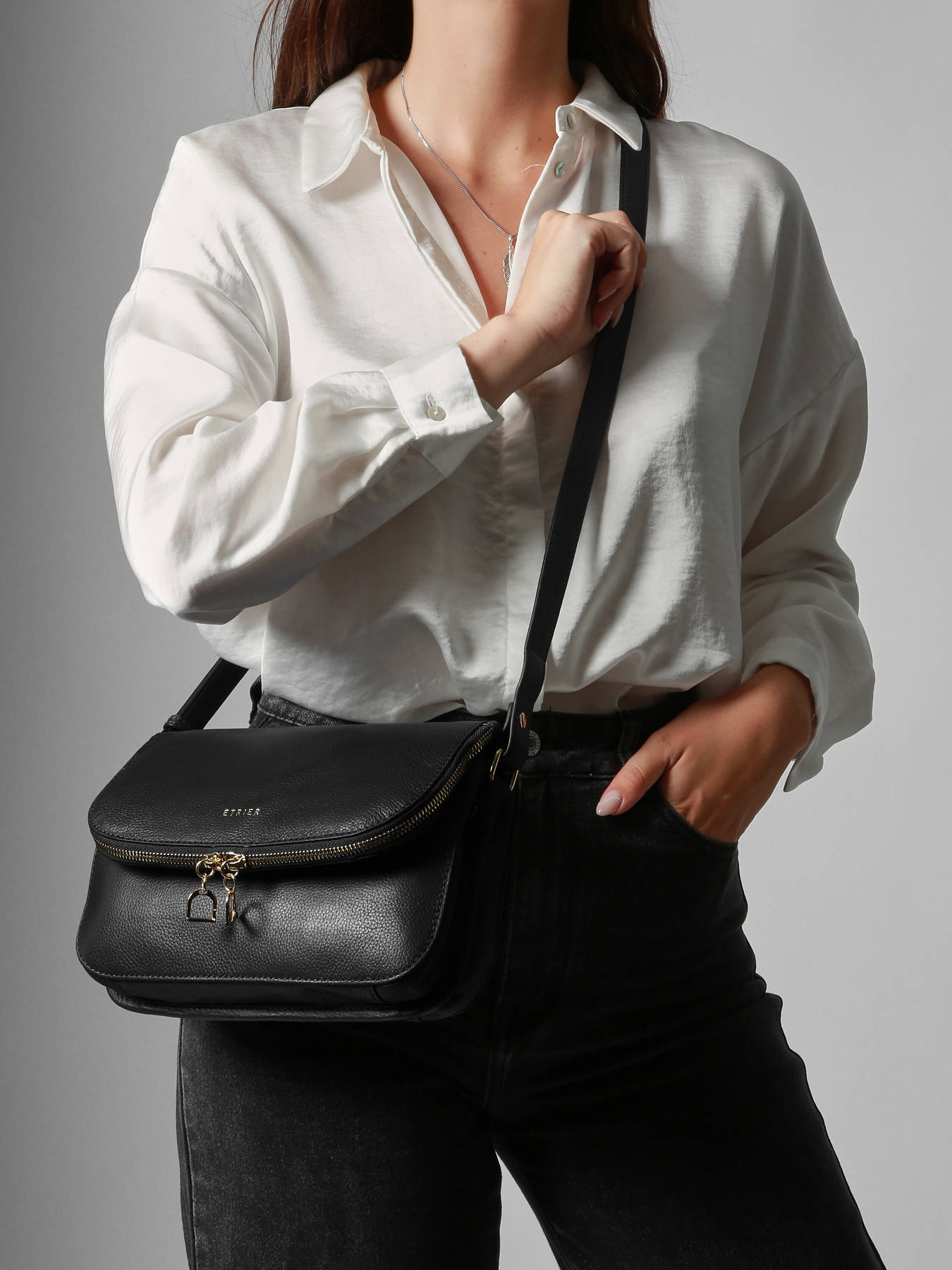 En cette saison, la ligne TRADITION redéfinit le sac bandoulière ETRIER avec une esthétique raffinée, ornée d'accessoires métalliques dorés pour une touche féminine. En plus de nos teintes classiques, des couleurs saisonnières font leur apparition. Le grand format de ce sac comporte une fermeture zippée bijou, ajoutant une note d'élégance supplémentaire à ce modèle tendance.