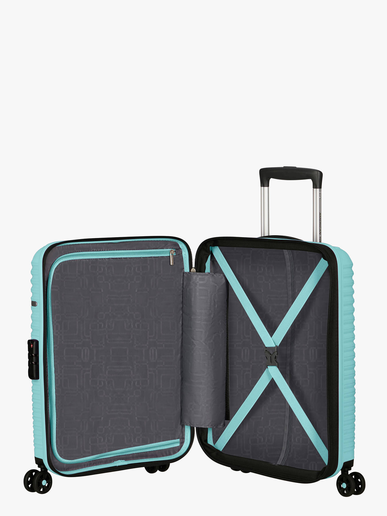 Compacte, légère et ultra-pratique, la valise cabine American Tourister LiftOff 55 cm est idéale pour les escapades courtes ou les voyages en avion. Fabriquée en polypropylène résistant, elle allie robustesse et légèreté avec un poids de seulement 2,2 kg. Son volume de 33,5 L peut être étendu grâce à une fonction extensible, parfaite pour les souvenirs de dernière minute. Dotée de quatre roulettes silencieuses, d’une poignée télescopique multipositions et de poignées supérieures et latérales, elle offre une excellente maniabilité. Côté sécurité, elle est équipée d’une serrure à combinaison TSA. L’intérieur bien pensé comprend des sangles élastiques croisées et un séparateur doublé pour garder vos affaires parfaitement organisées. Avec sa fermeture assortie et son logo en métal raffiné, elle affiche un look moderne et dynamique, idéal pour voyager avec style.